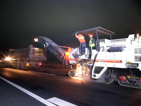 黃土嶺隧道整治工作正式啟動,維養(yǎng)中心人員按照分工開始隧道內(nèi)舊風機和燈具拆除工作。同時,養(yǎng)護攻堅項目開始當天的路面銑刨工作。