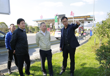 圖為集團(tuán)副董事長、總經(jīng)理張建平在臺州南收費(fèi)所主站考察協(xié)調(diào)院橋互通綠化、養(yǎng)護(hù)等工作