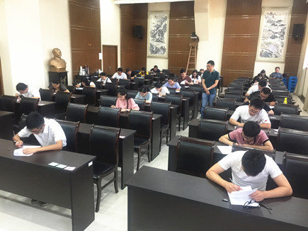 圖為考試現(xiàn)場 為杜絕考場舞弊行為,保證考試過程的嚴肅公平,現(xiàn)場筆試首次啟用監(jiān)控設備,考場均“現(xiàn)場直播”實時錄像。考試過程組織嚴密,工作有序,考場紀律嚴明,公司副總經(jīng)理董阿林到現(xiàn)場檢查考卷密封情況,親自監(jiān)督考風考紀。 公司人力資源部、監(jiān)察室與征費管理部負責人全程參與監(jiān)考。 陳一沁