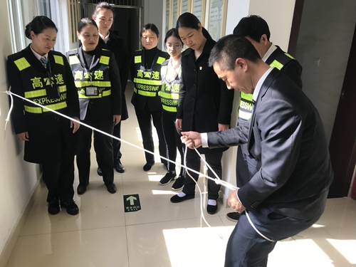 圖為演練現(xiàn)場 隨著所長孫明偉提問式的開場白,近日,臨海南收費(fèi)所以班組為單位,分四天集中開展全員逃生繩演練活動。全所員工積極參與、親身體驗(yàn),活動達(dá)到預(yù)期效果。 整個演練過程中,培訓(xùn)人員詳細(xì)講解了打繩結(jié)的方法與注意要點(diǎn),現(xiàn)場氣氛踴躍。通過開展此次活動,本所員工不僅掌握了逃生繩的使用方法,提高了高層逃生自救能力,而且進(jìn)一步提高了面對突發(fā)火情的應(yīng)對能力,增強(qiáng)了“防火防災(zāi)”的安全意識。 陳瑩