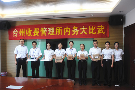 圖為征費一班、征費二班獲獎者合影 此次活動旨在進一步加強內務管理,規范內務秩序。通過比賽,大家相互學習比較,起到了共同提高的目的,同時也促進了臺州收費所整體內務水平的提升,為進一步爭創臺州市文明單位起到了積極的作用。 鄭瑛芝