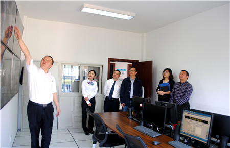圖為檢查組在監控室了解文明服務情況