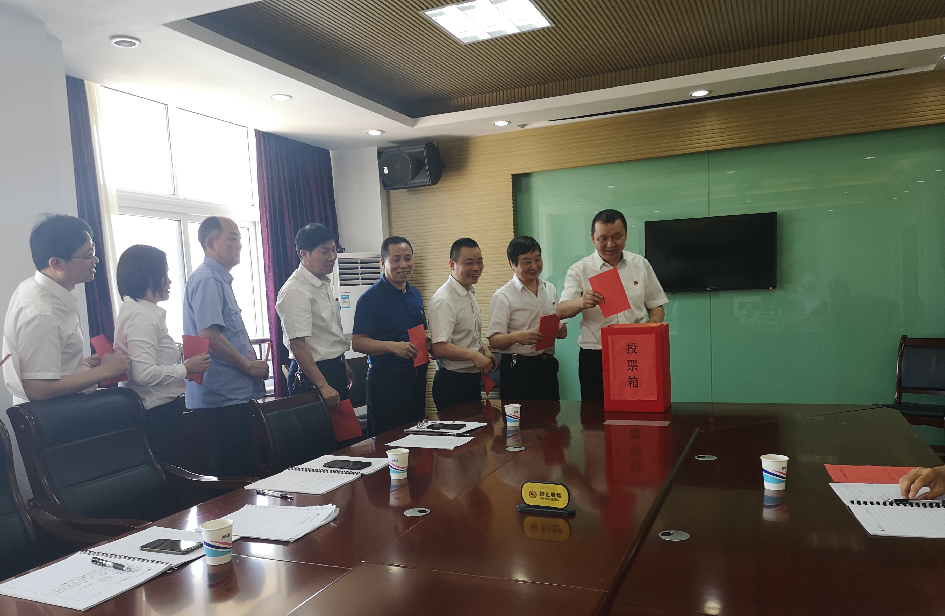 臺州收費所黨支部召開黨員大會進行換屆選舉 6月4日上午,臺州收費所黨支部組織召開黨員大會,舉行支部換屆選舉工作,全體黨員參加此次會議。 本次選舉遵循規定程序,以無記名差額投票方式選舉產生新一屆支部委員,選舉王小勇為黨支部書記,何先林為組織委員兼紀律委員,朱歷煜任宣傳委員。