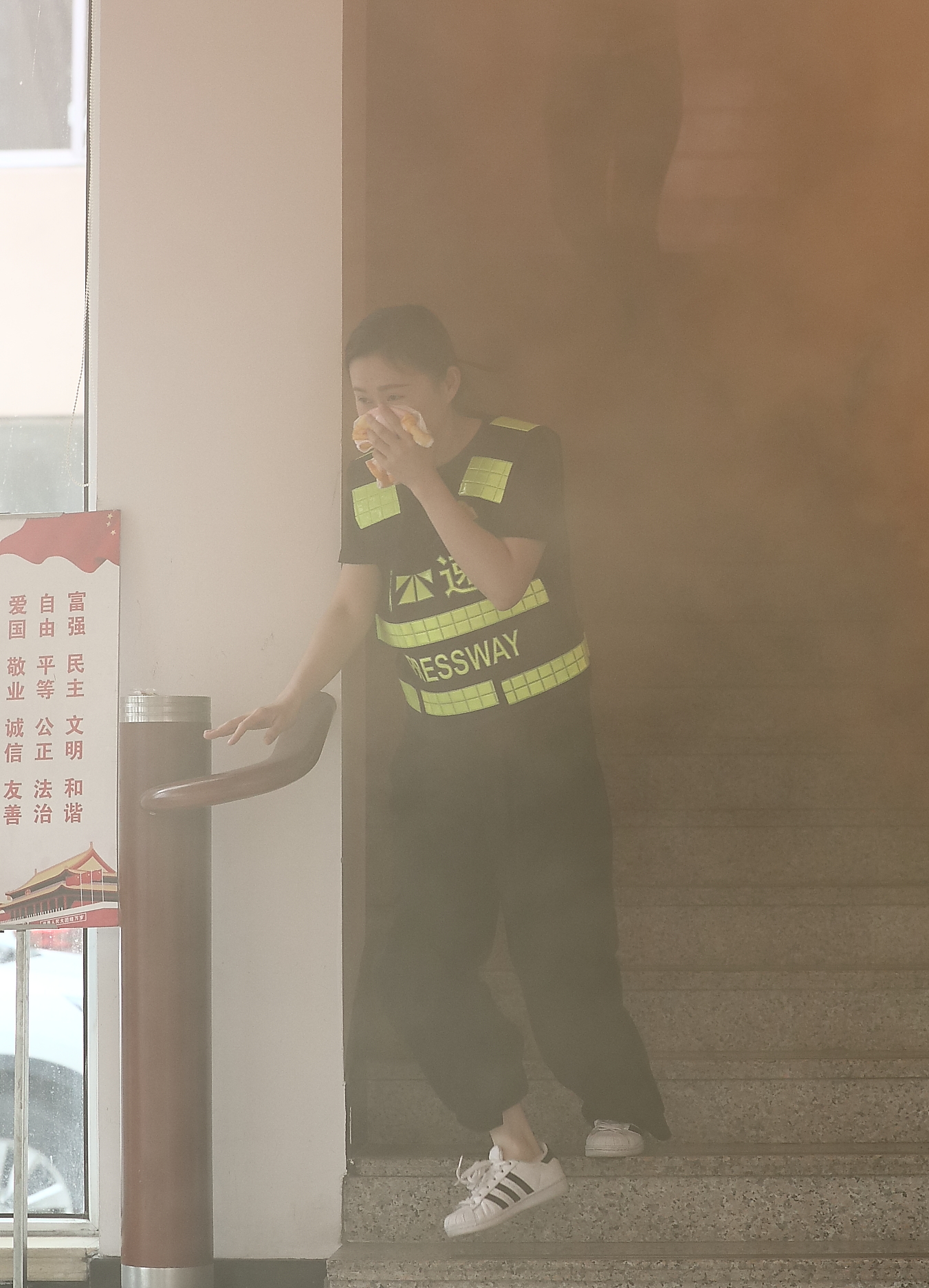 圖為火災逃生演練現場 講座結束后,該所隨即開展火災逃生演練。員工發現“火情”后立即撥打報警電話,參加演練人員聽到警報聲后,迅速拿起打濕的毛巾捂住口鼻,按照正確逃生動作要領,從樓上彎腰低姿扶墻往樓下跑,大家有序疏散至安全地帶。 此次消防安全培訓,提高了全員的消防安全意識,提升了火災等突發事故的應急處理能力。 楊雅芬