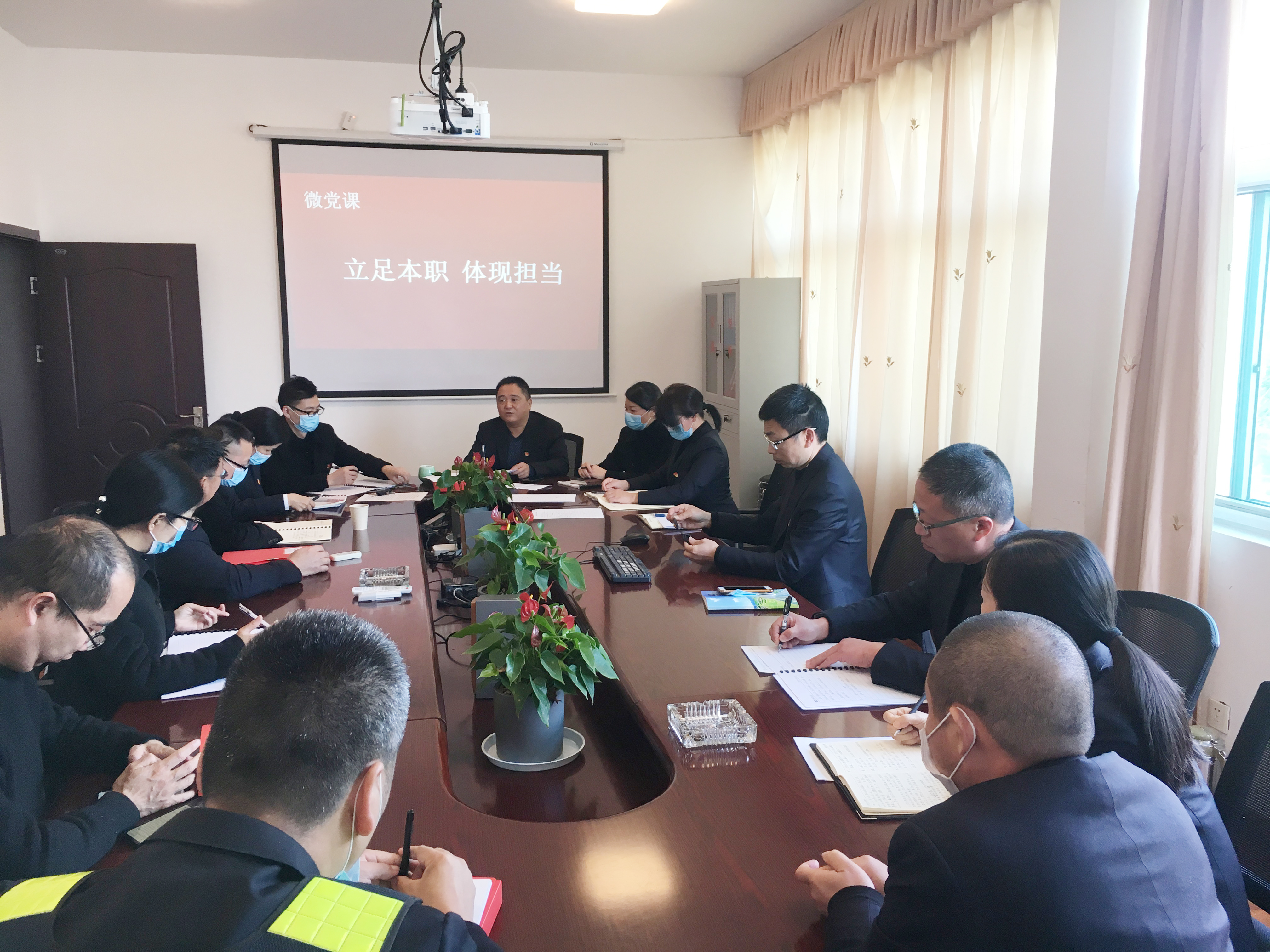 圖為支部書記上黨課現(xiàn)場 隨后,王益民為各黨員上了一堂《立足本職、體現(xiàn)擔當》的微黨課。 夏蓮萍