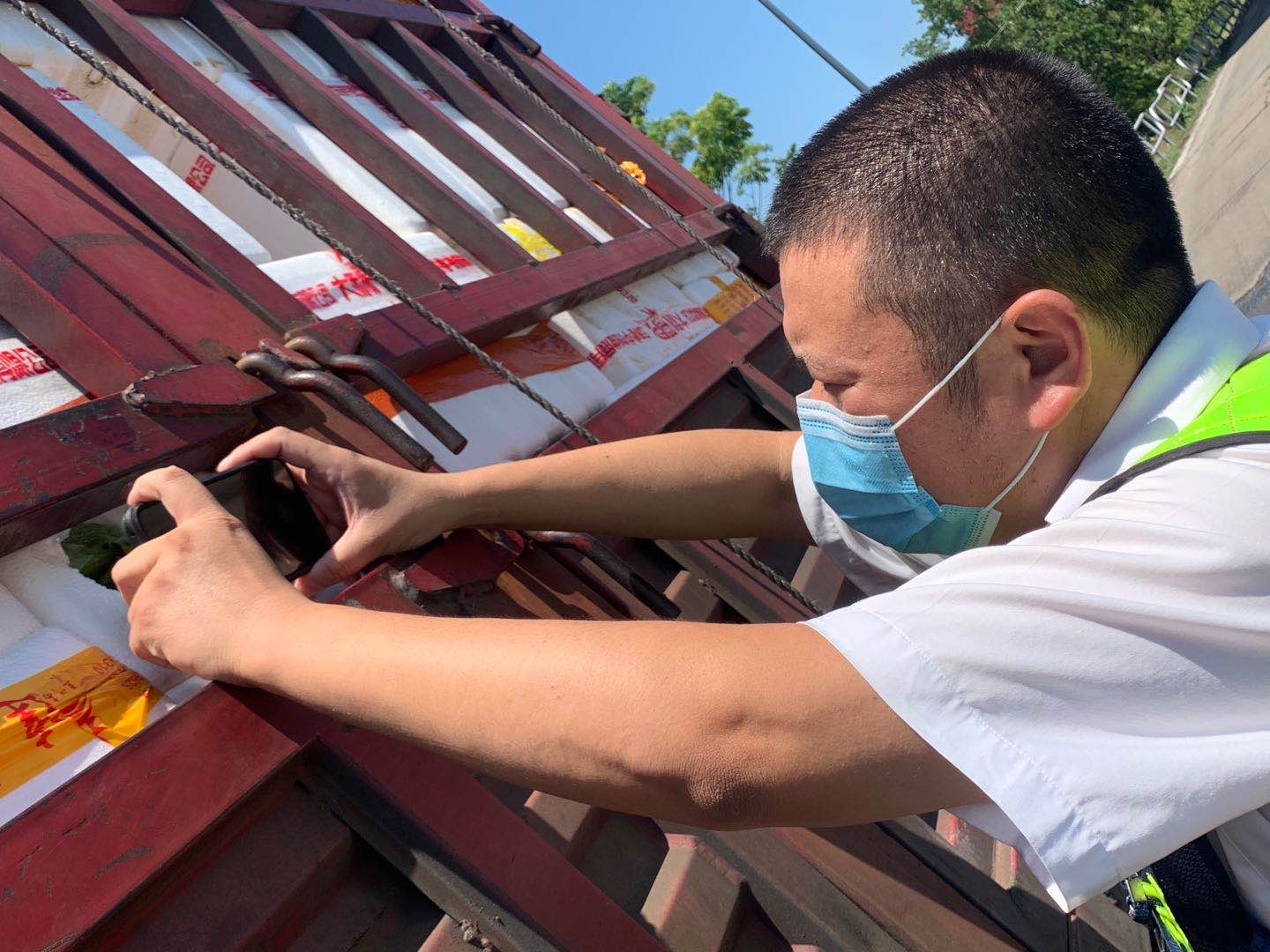檢查綠農車,遇到攀爬驗貨時,車輛欄桿因高溫炙烤至少在四五十度以上,臺州南收費所班長周冬子笑著說:“現在的車欄桿都‘辣手’了,腳底板也像踩了‘風火輪’。” 話音還未落,只見他蹭蹭幾下,已然爬上貨車,一邊檢查貨物一邊用袖子蹭掉臉上豆大的汗珠,被曬得黝黑發紅的皮膚在烈日下格外醒目。綠農車開走后,他顧不上滿身汗水,拿起了掃把開始打掃灑落在車道上的綠農產品。因為他知道,這些灑落的農產品,如不及時清理,在太陽曝曬后將會更加刺鼻,影響收費站的形象。 熱浪滾滾,卷不走收費員們工作的熱情;夏日炎炎,燃不盡收費員們堅守的意志。他們用執著在高溫下書寫愛崗敬業,用責任和擔當保障著高速的平安暢通。 項丹穎