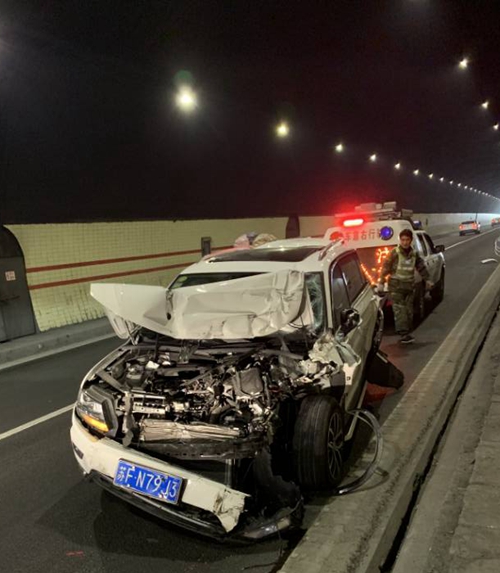 圖為事故現場 在很短的時間內,巡邏車就趕到現場。此時塘嶺隧道事故現場一片混亂,眾多車輛滯留。執勤隊到達現場做好預警措施后,執勤隊員勸離兩輛事故車駛往塘嶺隧道南廣場等候交警處理,引導擁堵車輛有序通行。巡邏車尾隨事故車輛,做好預警工作,緩慢駛向寧向隧道口。然而當巡邏車行至寧向出口處,又有兩車發生追尾,被追尾車輛已是“體無完膚”,現場有大量的拋灑物,嚴重影響其他車輛通行,需拖車和清障車的救援,清障施救車輛也及時趕到,現場才恢復正常通車,此時距離第一起事故發生僅僅過去半個小時。 在此,臺州高速集團溫馨提醒,雖然大家歸家心切,但是春運期間高速車流量大,車速快,行車過程中盡量保持安全車距,避免人員傷亡和財產損失。 陳旦平