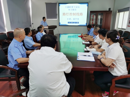 末伏高溫持續(xù) “每月一講”熱度不退 “末伏”到來,酷暑高溫不退。8月18日,大溪嶺隧道所開展“每月一講”電工業(yè)務(wù)培訓(xùn)。此次培訓(xùn)由該所電工技師湯寧光主講《路燈控制線路》。
