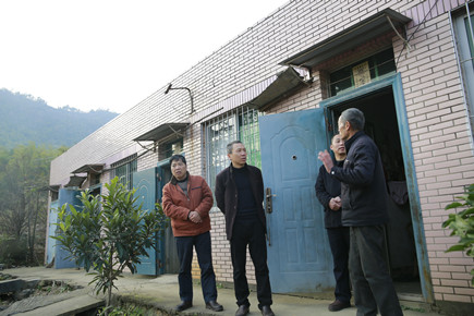 圖為總經(jīng)理張建平在向山體管理員了解情況