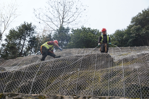 “錨桿施工、掛網制作安裝、柔性防護網編制對技術性和安全性都有極高的要求,我們都嚴格按照施工圖紙及規(guī)范要求施工?!惫こ特撠熑藯顣詵|介紹。
