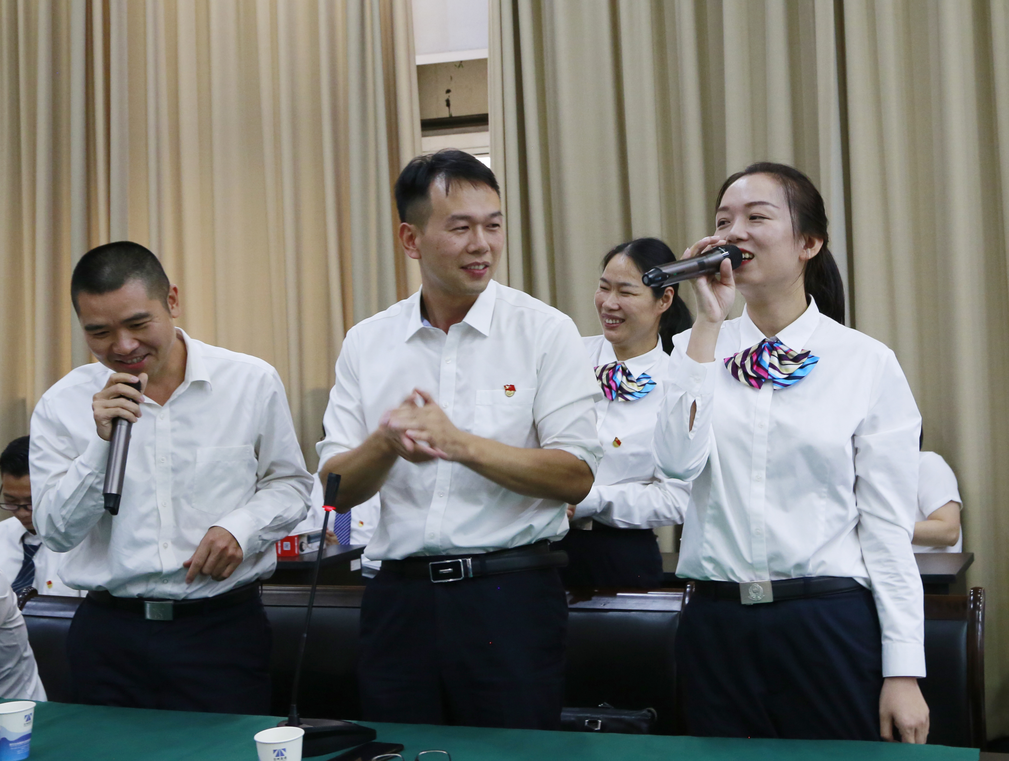 圖為參賽選手答題 “我和我的祖國,一刻也不能分割......”搶答環節中,回答錯誤的支部齊齊起立,表演了一段經典紅歌。在輕松的氛圍中走進黨章黨規、十九大精神知識,深入學習習近平新時代中國特色社會主義思想,既有“意義”又有“意思”,既有“氛圍”又有“格調”。