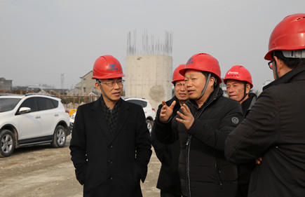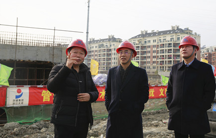 圖為董事長謝文君督查內(nèi)環(huán)北路(江口段)工地