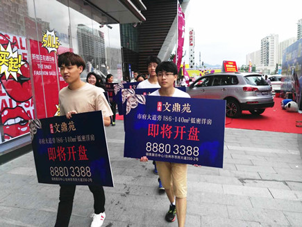 圖為文鼎苑銷售部人員在商場內開展宣傳活動 在活動現場,參加人員一邊做陶藝,一邊詢問樓盤詳細情況,氣氛十分熱烈。同一時間,在萬達廣場和銀泰商場內,文鼎苑銷售部的帥哥美女們手持樓盤開盤廣告宣傳牌,他們一個個面帶笑容、朝氣蓬勃、專業細致地為前來咨詢的客戶講解樓盤的具體情況。宣傳隊伍所到之處,吸引了大批客戶的關注。 以上活動是文鼎苑項目首批開盤前期營銷推廣中的其中一個環節。為營造良好的銷售氛圍,在前期,仁和公司通過大型戶外廣告、微信公眾號實時更新、新聞媒介重點發布等,陸續進行多方位媒體宣傳攻勢。同時,謀劃舉辦了“文鼎苑家風征集活動”、立夏、母親節、“520與愛相約”、端午節、兒童節等節假日專題宣傳活動。此外,還安排了銷售人員在周末深入椒江拆遷區進行拓客派單活動。 目前,高速房產集團的員工們正戮力同心,奮力拼搏,為全力打響文鼎苑首期開盤炮而努力奮戰。 包啟曉