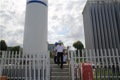 圖為張建平一行正在加氣工藝區(qū)了解情況