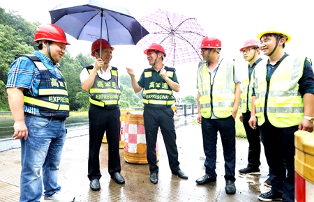 7月23日上午,集團總經理張建平冒著大雨到大溪嶺—湖霧嶺隧道機電改造現場視察指導工作,詳細了解工程進展情況。