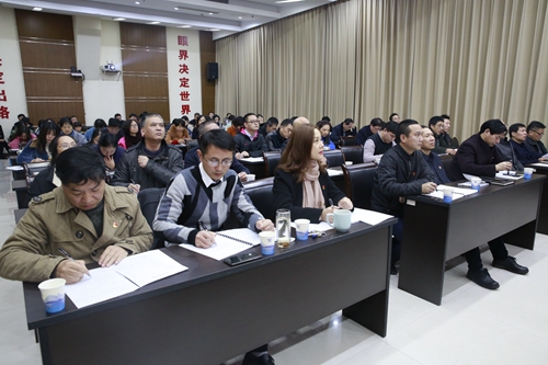 圖為參加學習的黨員領導干部和職工 活動由總經理助理李軍鋒主持,集團大樓全體員工現場參加學習,各所、中心、子公司通過視頻會議系統學習。 陳林偉
