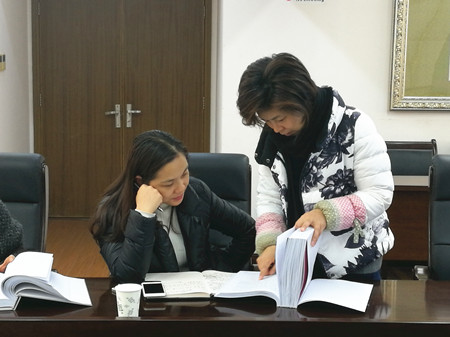圖為公司總會(huì)計(jì)師章彩霞聽取內(nèi)審工作程序