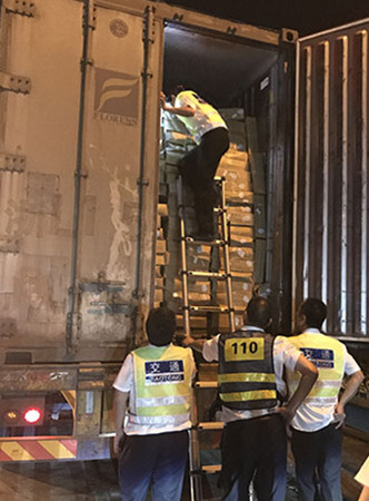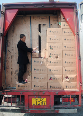 圖為工作人員在檢查假冒“綠農(nóng)車”