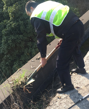 圖為清理后的屋頂排水溝 大溪嶺隧道管理所依山而建,落葉、塵土、沙石堆積極容易造成排水溝的堵塞,如汛期來(lái)臨,排水溝堵塞造成的隱患無(wú)窮。 所執(zhí)勤隊(duì)根據(jù)安排,排查配電房、管理房等汛期容易受災(zāi)害影響的隱患,遵循“發(fā)現(xiàn)一處整治一處,整治一處銷(xiāo)號(hào)一處”的原則,對(duì)配電房、管理房的屋頂排水這一安全隱患和薄弱環(huán)節(jié)進(jìn)行清理,以實(shí)際行動(dòng)落實(shí)整改和消除隱患,確保2018年安全度汛。 陳智慧