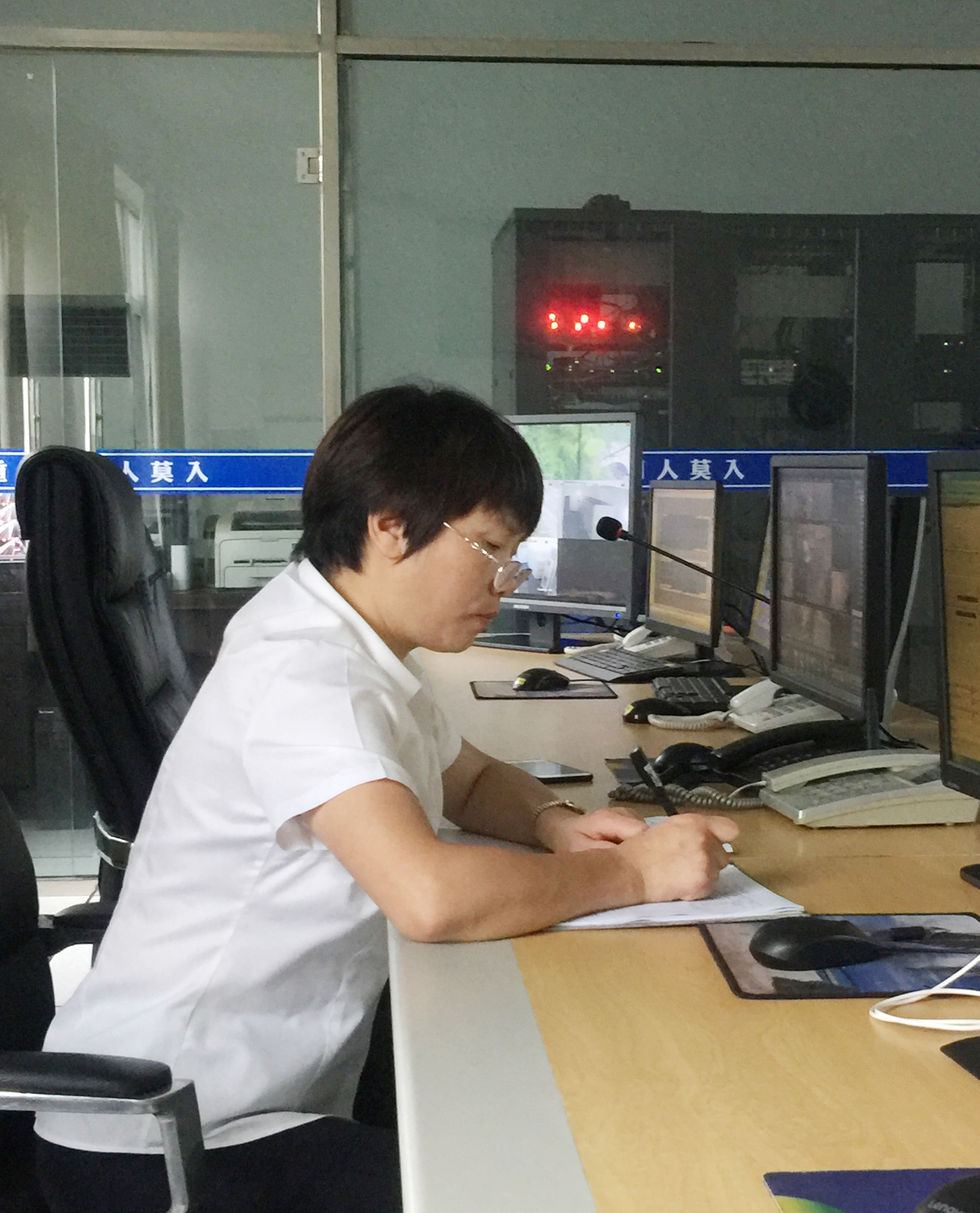 圖為交接班場景 開朗又樂觀,善于團(tuán)結(jié)同事,幾乎是班隊(duì)“組織部隊(duì)”擔(dān)當(dāng)?shù)?/span>“開心果”,她就是三隊(duì)中控員金素彬。別看她平時(shí)嘻嘻哈哈大大咧咧,工作起來卻一板一眼,來不得半點(diǎn)馬虎。接班上崗時(shí),只見她一手拿筆,架起老花鏡,認(rèn)真做好中控交接班記錄,仔細(xì)檢查監(jiān)視設(shè)備運(yùn)轉(zhuǎn)情況,確保中控設(shè)備都能正常運(yùn)行。中控室內(nèi),幀幀銀屏,一覽車流,幅幅畫面,縱觀隧道南北動向。7月6日下午4點(diǎn)47分,金素彬敏銳地發(fā)現(xiàn)一輛集裝箱拋錨在寧向隧道停車帶,一半車身掛在主車道上,車流如織呼嘯而過,情況十分危險(xiǎn)。于是鏡頭切換、廣播呼叫、電話通報(bào)、更改信號燈、情報(bào)板、追蹤記錄……一切操作有條不紊、井然有序,如同久經(jīng)沙場的指揮官。就這樣,她又一次通過熒屏和電話,排除安全隱患,保證了隧道的暢通。面對進(jìn)入倒計(jì)時(shí)的退休日子,她感慨千萬:“十幾年的中控工作還真是舍不得,如果公司需要,我會義不容辭地留下為公司發(fā)展作貢獻(xiàn)。” 平凡的崗位,普通的中控員,他們為守護(hù)隧道的安全暢通奉獻(xiàn)出自己最美好的青春年華,他們默默堅(jiān)守,日復(fù)一日地做著重復(fù)而單調(diào)的事,卻發(fā)揮著不平凡的作用。 柳媛 林玲