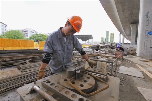 “綁鋼筋也是個技術活?!瘪R進學告訴記者,8#立交工程中,像他這樣的鋼筋工就有100多號人,他們按照設計將鋼筋進行布置和固定,形成建筑的骨架。馬進學熟練地把一組加工好的鋼筋綁扎到結構上,這樣的工序,他一下午能做20多組。