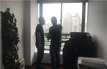 圖為檢查門窗 臺(tái)風(fēng)來臨期間,市政公司要求員工手機(jī)保持暢通,盡量在公司或者家里不要外出,確保人身和財(cái)產(chǎn)的安全,避免不必要的傷害和損失。 徐夢(mèng)燁